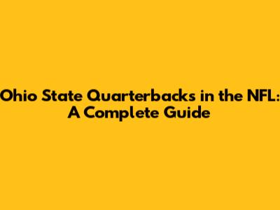 Ohio State Quarterbacks In The NFL: A Complete Guide